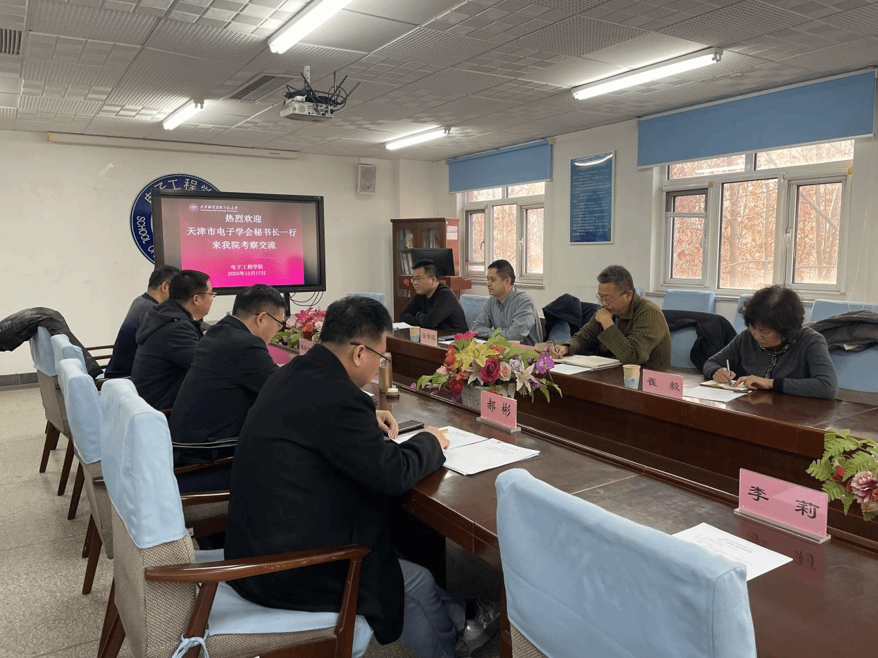 本网讯【通讯员 刘丹阳】12月17日上午,天津市电子学会秘书长、TCL科技集团(天津)有限公司总工程师回景旺,天津市电子学会常务理事、中小企业工作委员会主任李军,天津市电子学会中小企业工作委员会秘书长杨铮,天津市电子学会秘书处崔毅到电子工程学院考察交流。学院党委书记韩树明、院长李士心、副院长郝彬以及学院教师代表参加此次交流会,会议由副院长姬五胜主持。