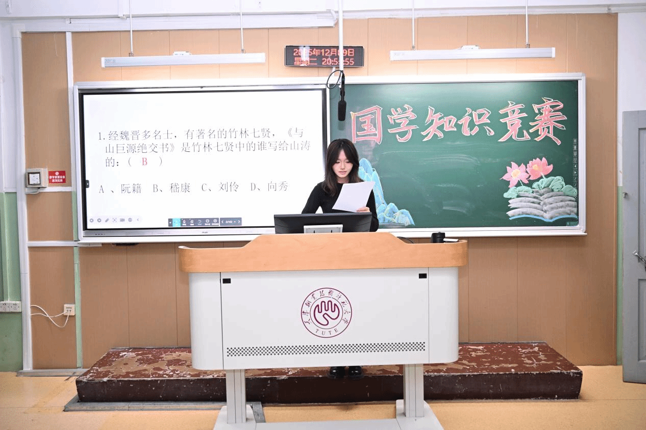 竞赛以班级为单位展开,大一各班级分别选派4名学生代表组成16支参赛队伍,历经初赛、决赛两个阶段的激烈角逐。初赛采用轮流答题制,聚焦国学知识储备与团队协作能力的考察;决赛则设置紧张刺激的抢答环节,全面考验选手的临场反应速度与应变能力。比赛现场,各参赛代表队沉着应答、踊跃抢答,在一道道涵盖诗词歌赋、历史典故、传统礼仪的题目中展现出扎实的国学素养与昂扬的精神风貌。激烈的竞技氛围中,学子们不仅学习了知识,更深刻体会到国学并非脱离现实的“老古董”,而是能够为现代生活提供智慧指引的文化瑰宝。这种传统与现代的创新融合,既为国学文化赋予了更鲜活的传播形式,也推动当代青年在传承中实现对传统文化的创造性转化、创新性发展,为中华文脉注入持久活力。